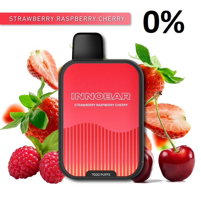 VAPER DESECHABLE STRAWBERRY RASPBERRY CHERRY 7000 PUFFS 0% – INNOBAR